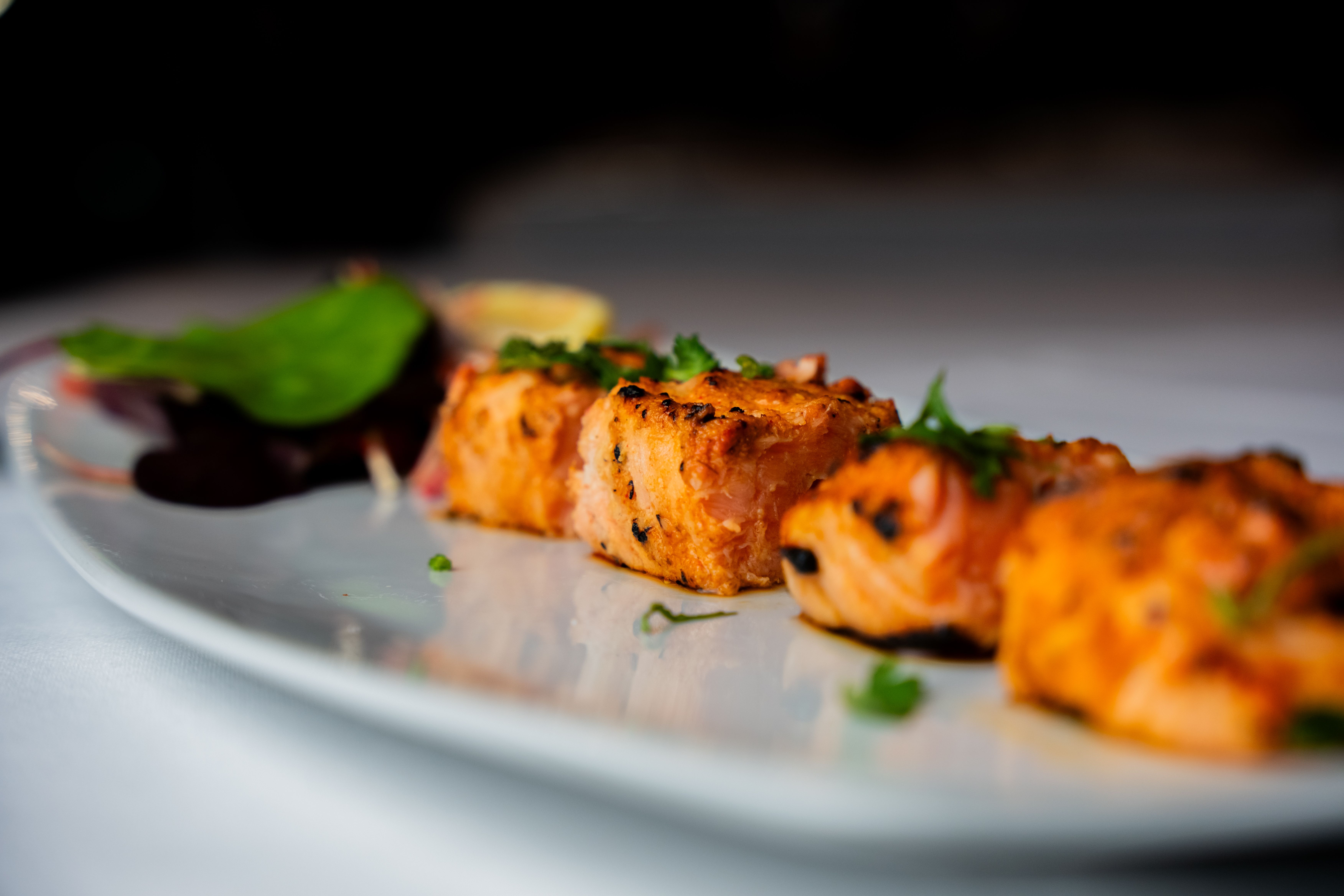 Succulent lamb chops marinated overnight in ginger, yogurt, and our spice blend, then grilled to a smoky char. Juicy, flavorful, and with a gingery kick that keeps you coming back for more. This is indulgence done right. Pairs well with: Mint chutney, a side of Jeera rice, and a glass of red wine.
