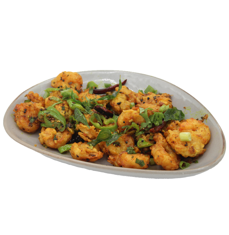 A Mirch Dhamaka original and crowd favorite — prawns stir-fried to perfection with green chilies, curry leaves, garlic, and house spices. Bursting with flavor and just the right amount of heat, this dish pairs perfectly with drinks or biryani. Pairs well with: Hyderabadi Dum Biryani or cocktails for the ultimate combo.